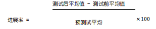 分析測(cè)試后兩組的分?jǐn)?shù)變化。一個(gè)組的變化分?jǐn)?shù)被定義為每個(gè)變量從前測(cè)到后測(cè)的增加或減少。顯著性水平設(shè)定為p≤0.05。為了研究參與者的改善過(guò)程,所有數(shù)據(jù)的進(jìn)展率也按以下等式計(jì)算。