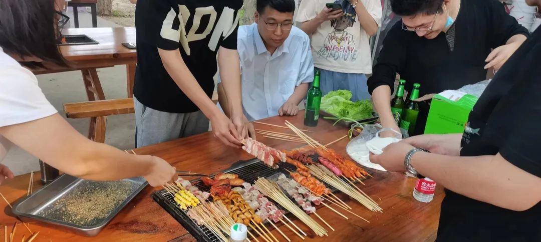 不一會(huì)兒,色香味俱全的烤串就新鮮出爐了,大家迫不及待得品嘗了起來。嫩滑、焦酥、麻辣,一瞬間都在口中翻騰起來,沖擊著小伙伴們的味蕾??諝庵锌M繞著快活的氣氛,大家吃著自己親手燒制的美食,聊著自己在工作和生活中遇到的各種趣事,其樂融融。
