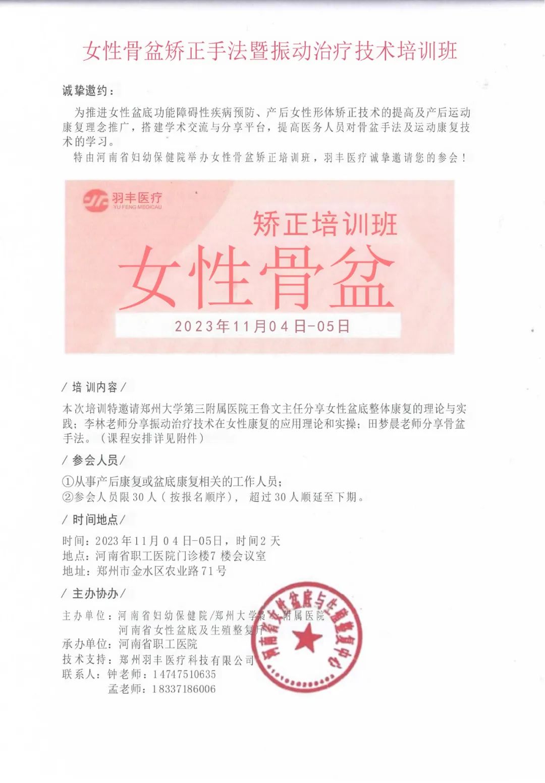 特由河南省婦幼保健院舉辦女性骨盆矯正培訓(xùn)班,羽豐醫(yī)療誠摯邀請您的參會!