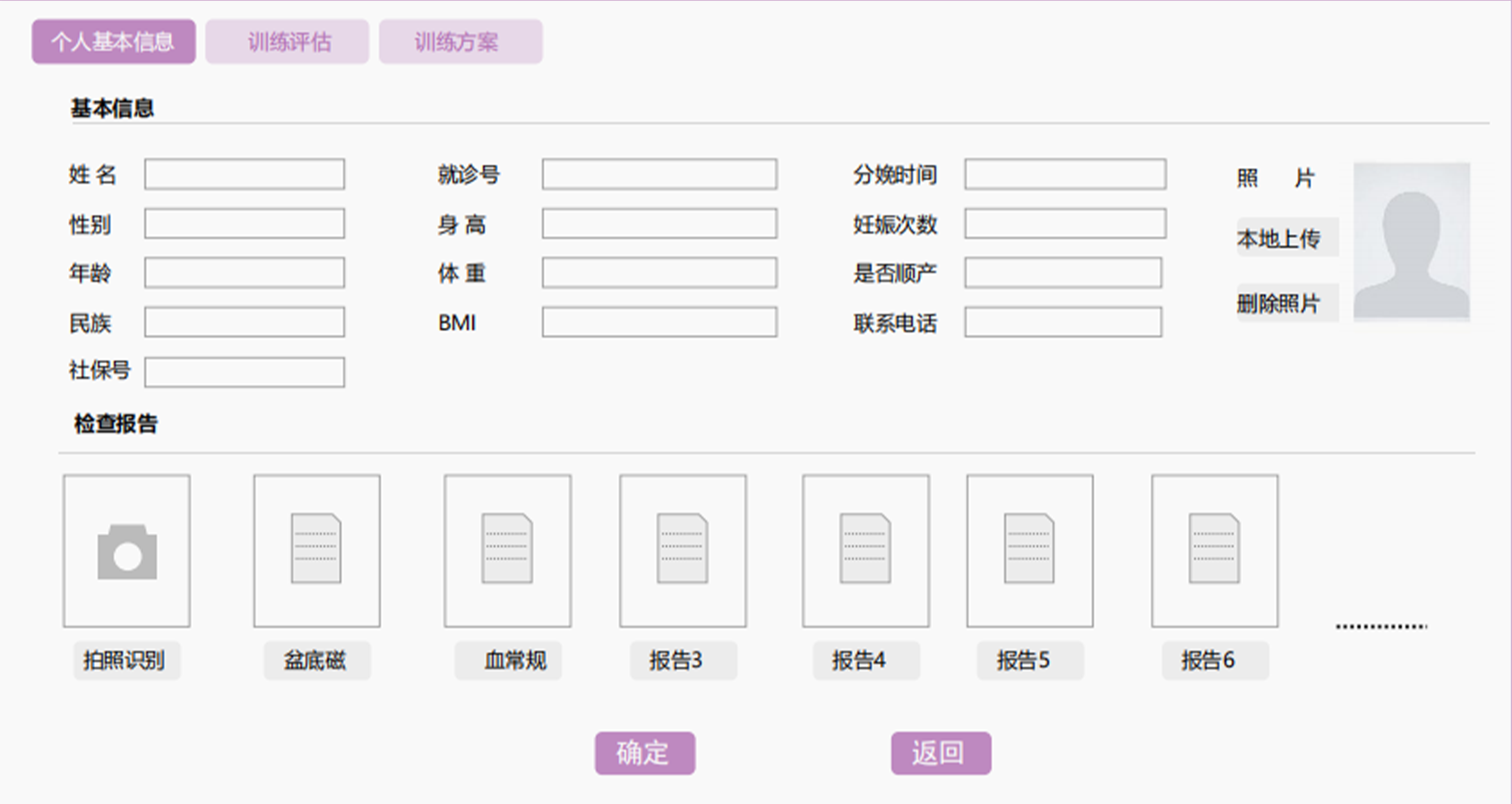 對用戶的個人信息進行錄入保存,也可采集其他的檢查評估報告,建立檔案,同時進行評估測試并根據(jù)評估測試結(jié)果進行運動處方的設(shè)定。